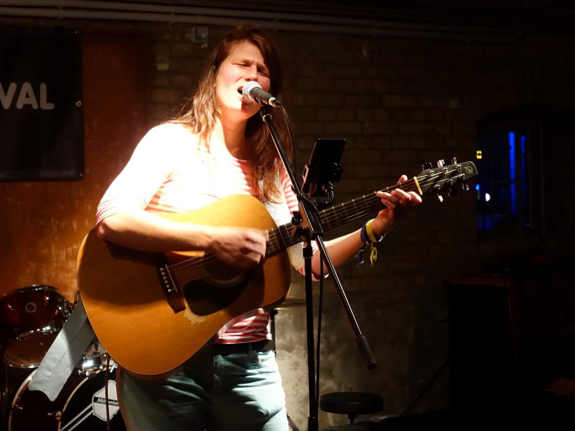 zur Akustikgitarre in der Liedermacherszene etablieren konnte und ihr Publikum mit Songs