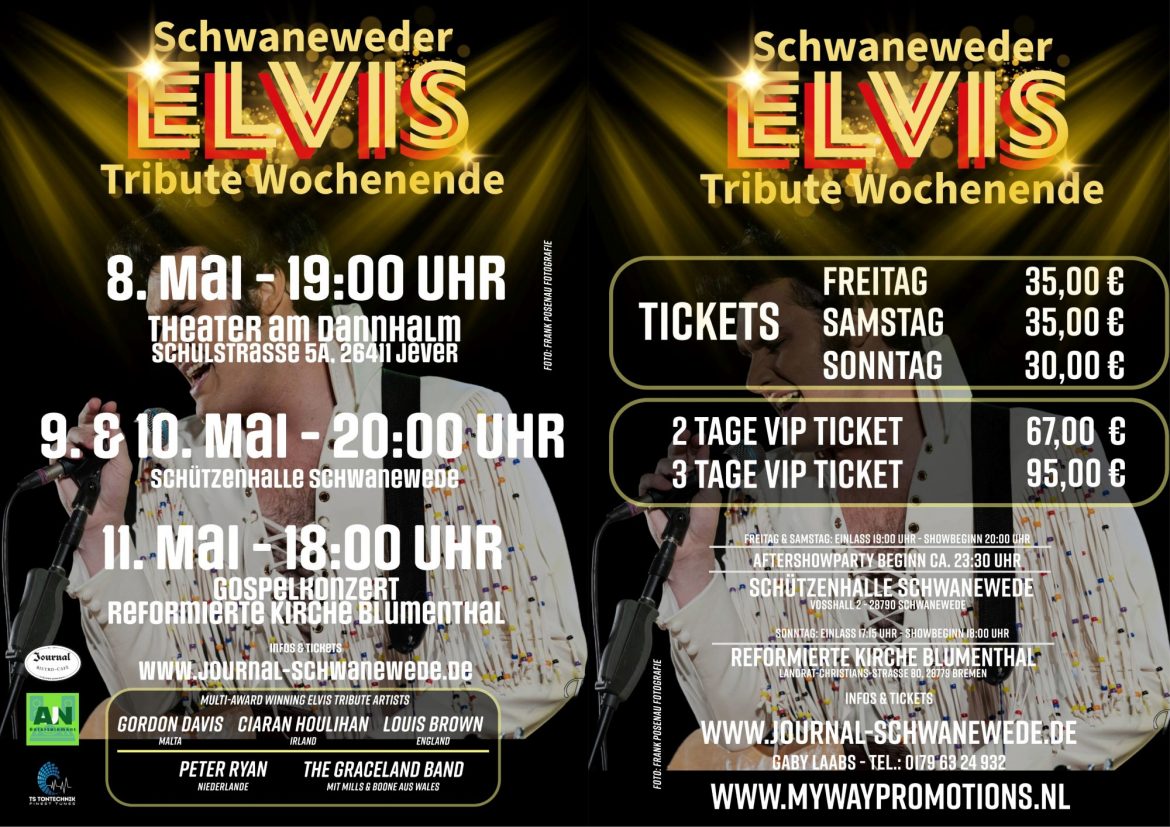 In diesem Jahr wäre Elvis Presley , der King of Rock’N’Roll 90 Jahre alt geworden. Dieses einmalige musikalische Erbe huldigen wir auch dieses Jahr wieder mit 4 fantastischen Shows beim 4. Schwaneweder Elvis-Tribute Wochenende.