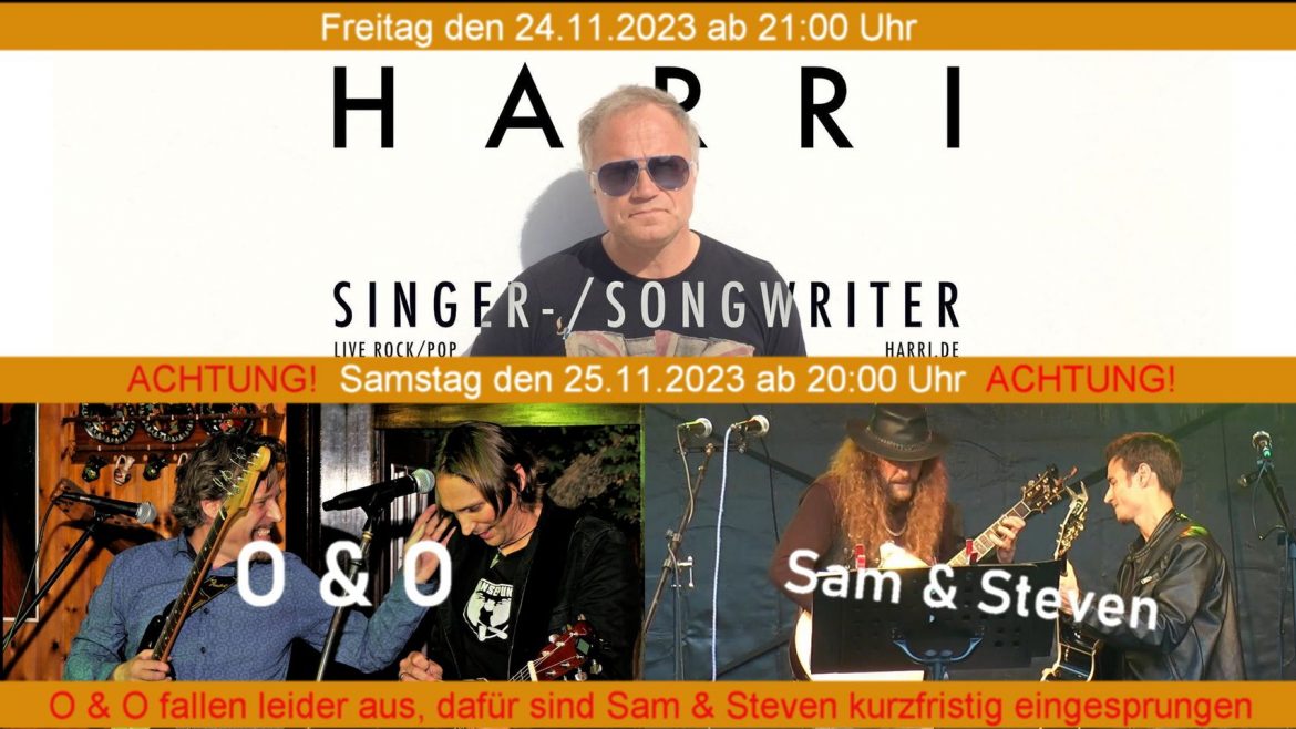 Da das Duo „O & O“ leider durch Krankheit ausfällt, sind dankenswerter Weise „Sam & Steven“ kurzfristig eingesprungen. Showtime ab 20:00 Uhr. Wir wünschen O & O gute Besserung!!! und bedanken uns vom ganzen Herzen bei Sam & Steven für die kurzfristige Zusage.!!!